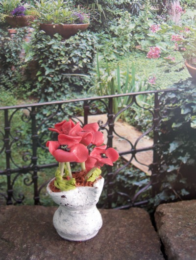 | Pink roses terracotta vase miniature |